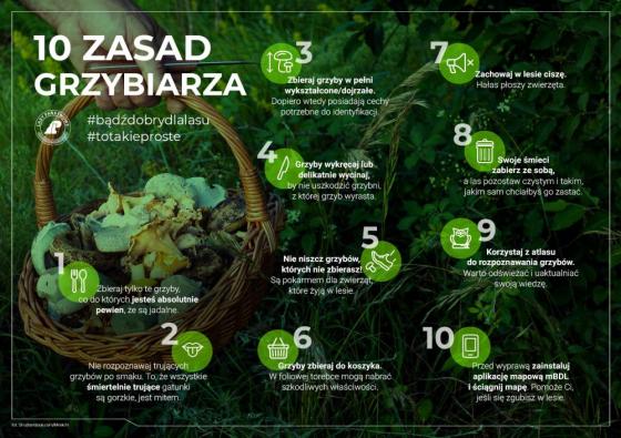 Leśnicy zapraszają na wspólne grzybobranie, ale apelują o odpowiedzialność! Czas spędzony w lesie to doskonała okazja do odpoczynku na łonie natury, ale pamiętajmy, że w lesie zawsze warto zachować ostrożność i dbać o nasze bezpieczeństwo.
